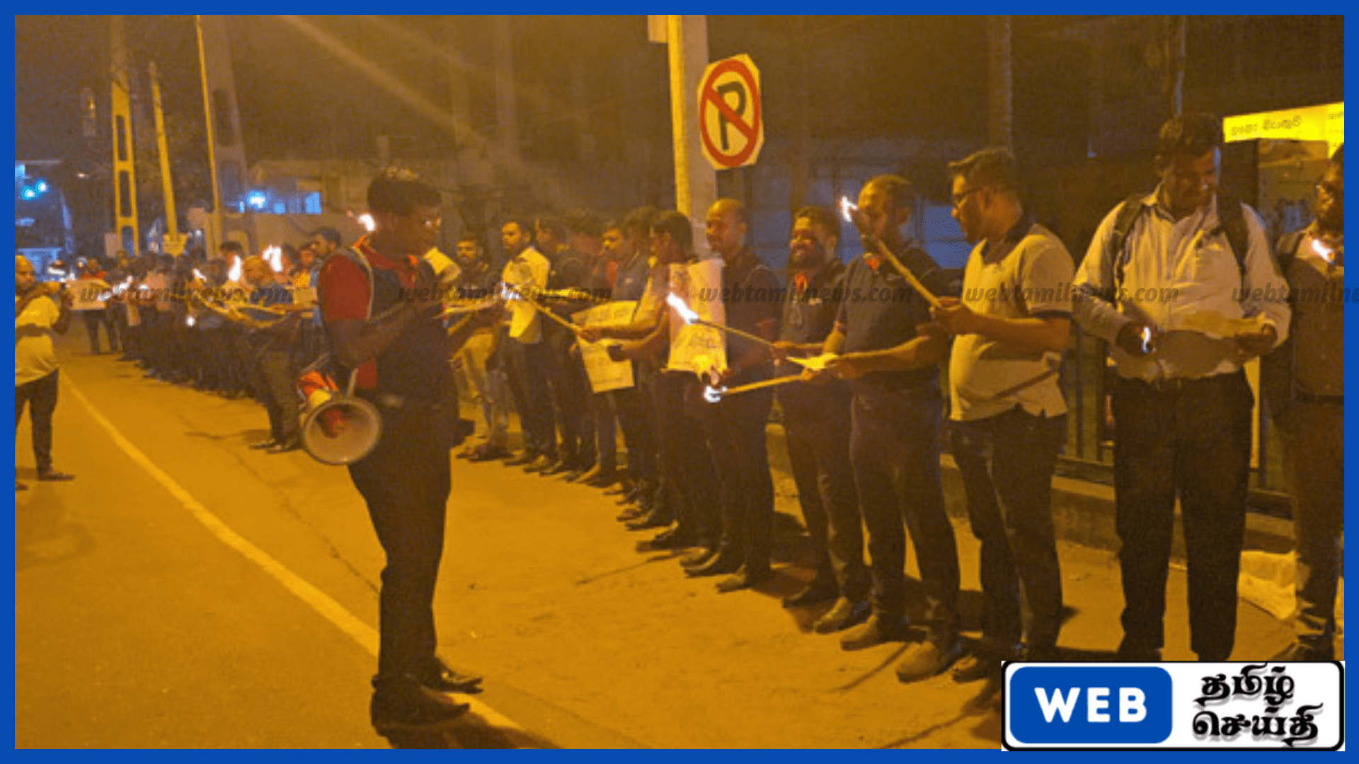 அரச வங்கிகளில் நிலவும் தீர்க்கப்படாத பிரச்சனைகளுக்கு எதிரான தீப்பந்த போராட்டமொன்று யாழ்ப்பாணத்தில் முன்னெடுக்கப்பட்டது.யாழ்ப்பாணம் வைத்தியசாலை வீதியில் உள்ள இலங்கை வங்கி வடபிராந்திய காரியாலத்துக்கு முன்பாக குறித்த போராட்டம் நேற்று (03) இரவு 7 மணியளவில் இலங்கை வங்கி ஊழியர் சங்கத்தின் ஏற்பாட்டில் இடம்பெற்றது. அரச வங்கிகளின் சட்டத் திருத்தங்களினூடாக வங்கி தனியார் மயப்படுத்தலை நோக்கி செல்லவுள்ளதாக போராட்டக்காரர்கள் குற்றஞ்சாட்டினார்.
